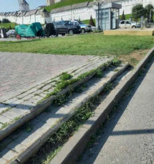 В районе улиц Федосеевская и Батурина в Казани идет ремонт тротуаров и лестниц. И только эта многострадальная лестница из трех ступенек (на снимке), откуда можно запросто упасть и покалечиться, уже несколько лет в таком плачевном состоянии. Перед гостями столицы стыдно!