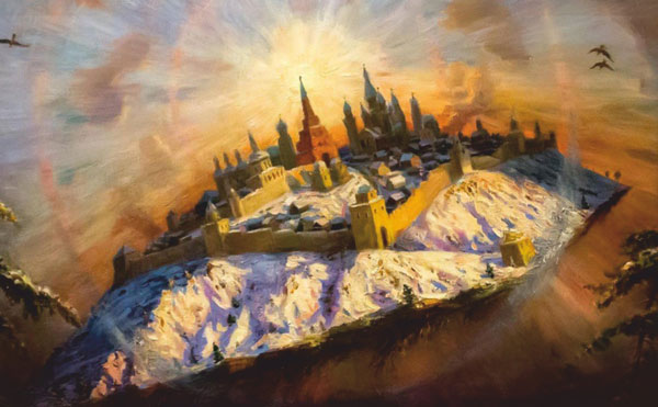 Юбилейная экспозиция в «Хазинэ» представляет творчество живописца в ретроспективе – с конца 1980-х годов и по настоящее время. Центральное место занимают исторические картины, посвящённые периоду расцвета Казанского ханства и трагическим событиям, связанным с падением его столицы. Среди них знаменитая серия «Вечная Казань» (на снимке).
