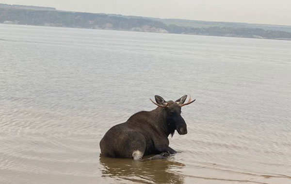 Очевидцы обнаружили животное на пляже. Лось стоял в воде и опасался выйти на берег из-за преследовавшей его стаи собак. У него была повреждена одна нога. Пытаясь оказать помощь, приехавшие на место два сотрудника Госкомитета РТ по биоресурсам сделали дротиком седацию, дождались, когда животное уснёт, загрузили его в прицеп и повезли к ветеринару. Однако в дороге лось пришёл в себя и начал биться в прицепе. Посовещавшись по телефону с ветеринарами и придя к выводу, что животное может ещё больше покалечиться, его доставили в лесопосадку, вблизи которой находились кормушки и охранная зона, и выпустили на волю.