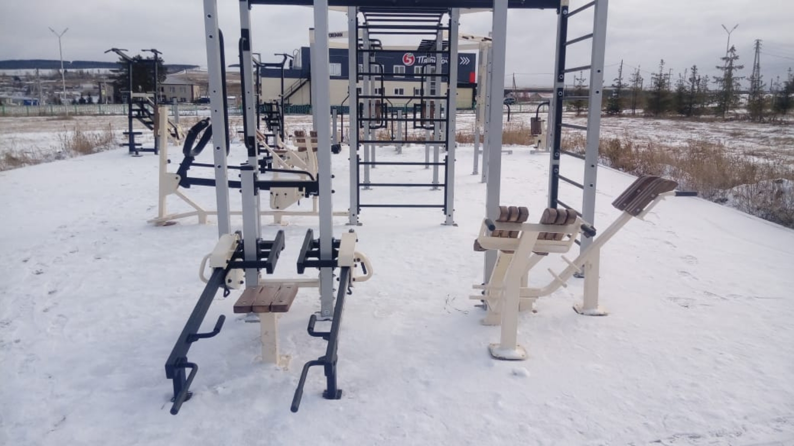 Площадка расположилась в парке культуры районного центра на площади в 310 квадратных метров и представляет собой комплекс тренажёров разной сложности.