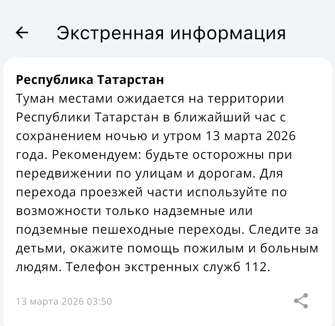 Татарстанцам рекомендовано соблюдать меры безопасности, а при необходимости звонить по номеру 112.