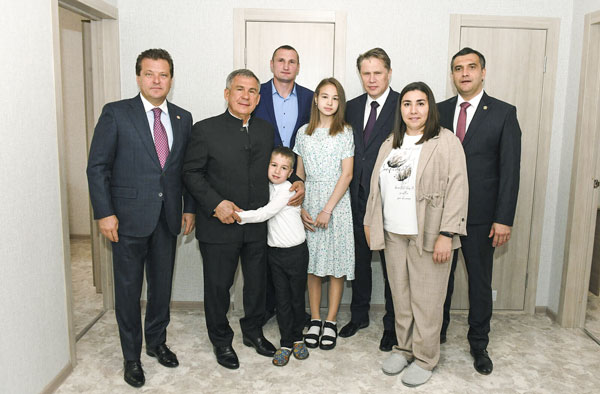 После открытия поликлиники Раис Татарстана и глава Минздрава РФ отправились в казанский микрорайон М-14, расположенный неподалёку от Республиканской клинической больницы. Здесь торжественно заселили многоквартирный жилой дом, построенный по программе социальной ипотеки. 30 квартир в новостройке получили медицинские работники.