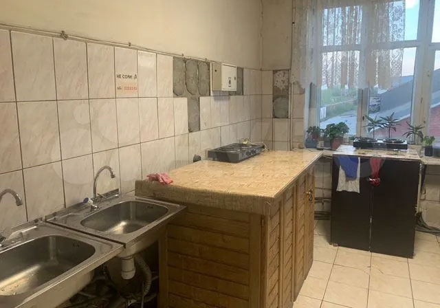 Замыкает топ-3 самых дешевых в Казани квартира 13 кв. м на верхнем этаже трехэтажки на улице Кулагина за 1 449 889 рублей. Судя по всему, кухня здесь общая на несколько квартир, вид у нее довольно обшарпанный: обвалившейся кафель, две самые простые раковины и пара маленьких электрических плиток. Сама комната выглядит почище: дешевенькие обои, которые местами отходят от стен, маленький диванчик и стенка.