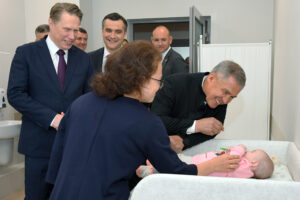 В казанском поселке ДербышкиРаис Татарстана Рустам Минниханов и министр здравоохранения РФ Михаил Мурашко открыли филиал детской поликлиники №6.