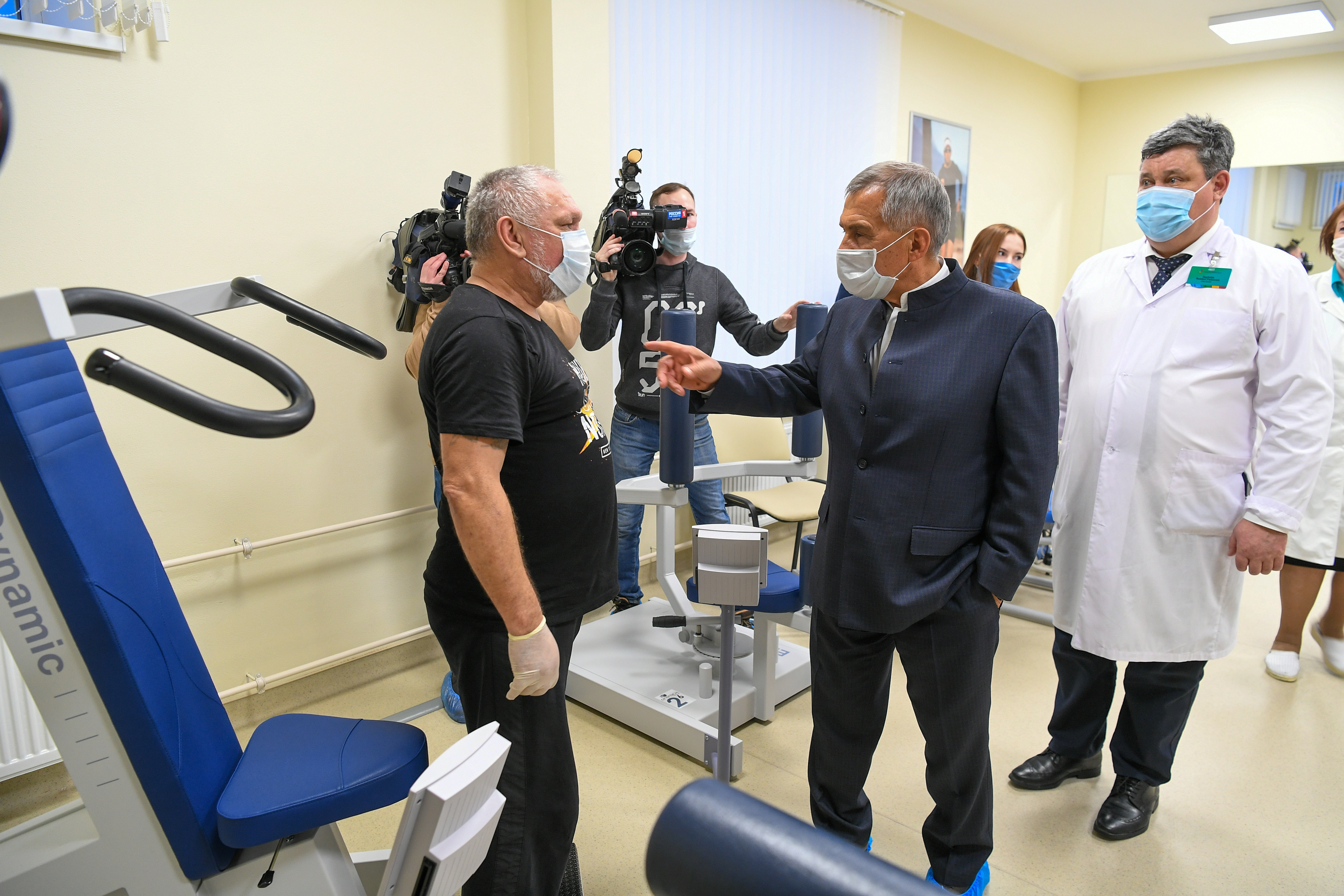 Рустам Минниханов и Анна Попова пообщались с казанцами, которые пришли в медучреждение для вакцинации, а также увидели, как проходят реабилитационные мероприятия для уже переболевших новой коронавирусной инфекцией (укрепление иммунитета, занятия лечебной физкультурой и др.).