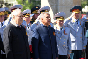 Раис Татарстана поприветствовал ветеранов, которые пришли отдать дань уважения погибшим героям. Также состоялась церемония возложения цветов к Монументу Матерям и Вдовам погибших воинов, Монументу Советскому Солдату.