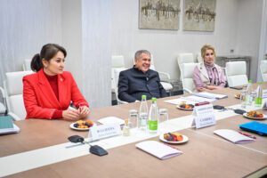 Президент Татарстана Рустам Минниханов в рамках итоговой коллегии Минкультуры РТ встретился с председателем Совета директоров киностудии «Союзмультфильм» Юлианой Слащевой и директором форума «Российская креативная неделя» Мариной Абрамовой.