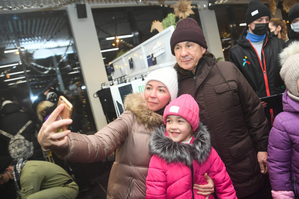 Затем Рустам Минниханов посетил новое здание проката коньков и ознакомился с ассортиментом сувенирной лавки. В магазине представлена сувенирная продукция Дирекции парков Казани. Здесь Президент РТ приобрел шапку и варежки.