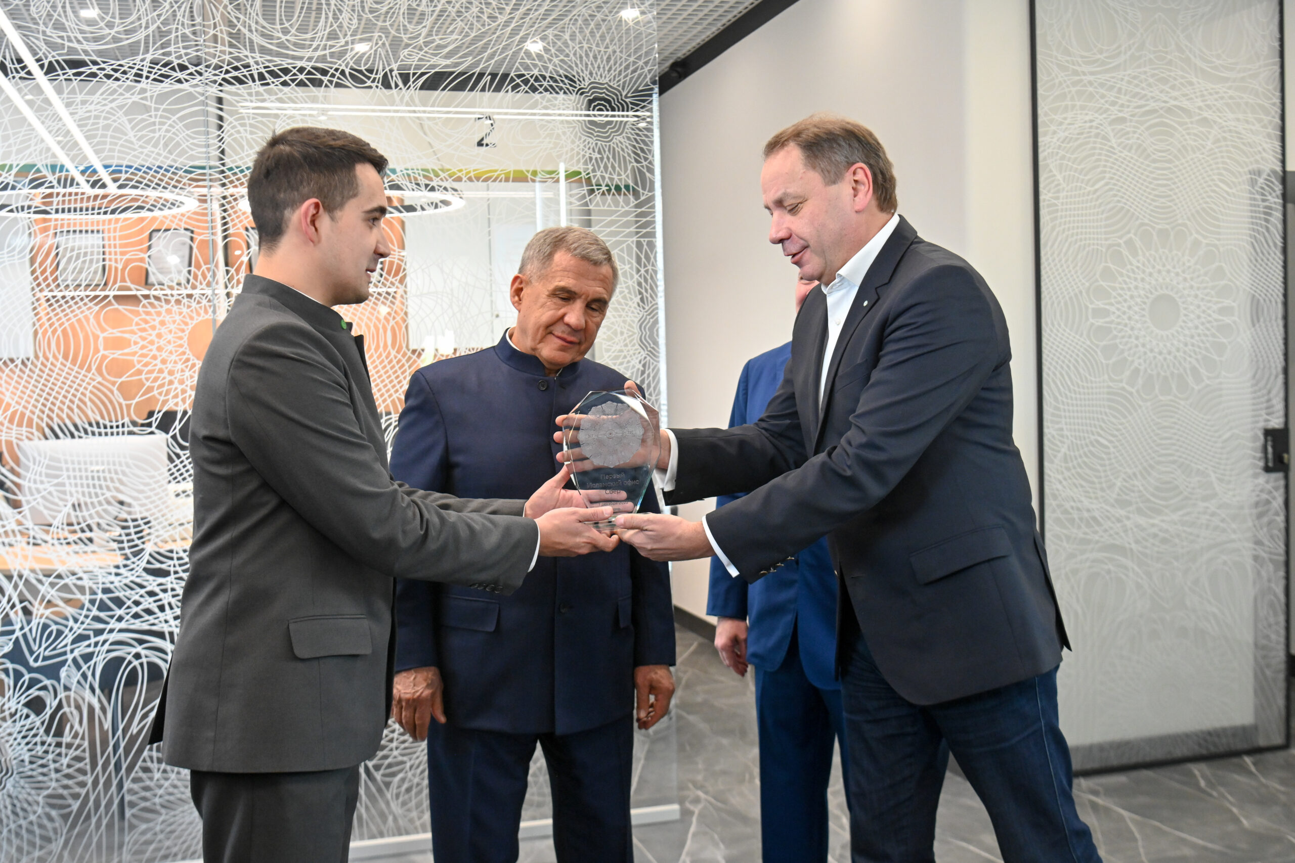 Рустам Минниханов ознакомился с перечнем услуг, предоставляемых банком, пообщался с сотрудниками финансового учреждения, осмотрел рабочие зоны и молельную комнату. Также в офисе представлен стенд, посвященный истории развития ислама в России.