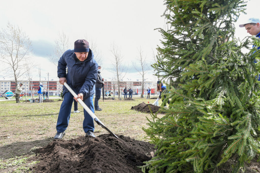 Вместе с Президентом Татарстана в высадке саженцев участвовали работники казанских предприятий, члены движения «Волонтеры Победы».