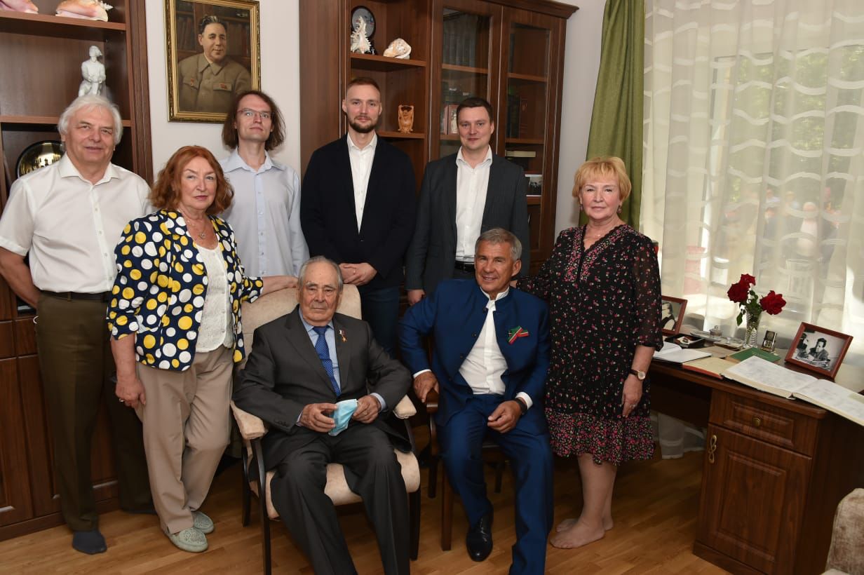 Затем Президент Татарстан и Государственный Советник РТ возложили цветы и посетили квартиру, в которой жили Кави Наджми и Сарвар Адгамова.