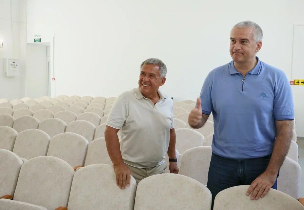 Совместно с Главой Республики Крым Сергеем Аксеновым Рустам Минниханов оценил качество работ по капитальному ремонту клуба и по благоустройству сквера, расположенного рядом, сообщает пресс-служба Раиса РТ.