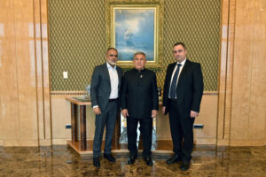 Президент Татарстана Рустам Минниханов встретился с основателем и генеральным директором компании «Раймед ТГ ПВТ» Радживом Кумаром в Доме Правительства РТ.