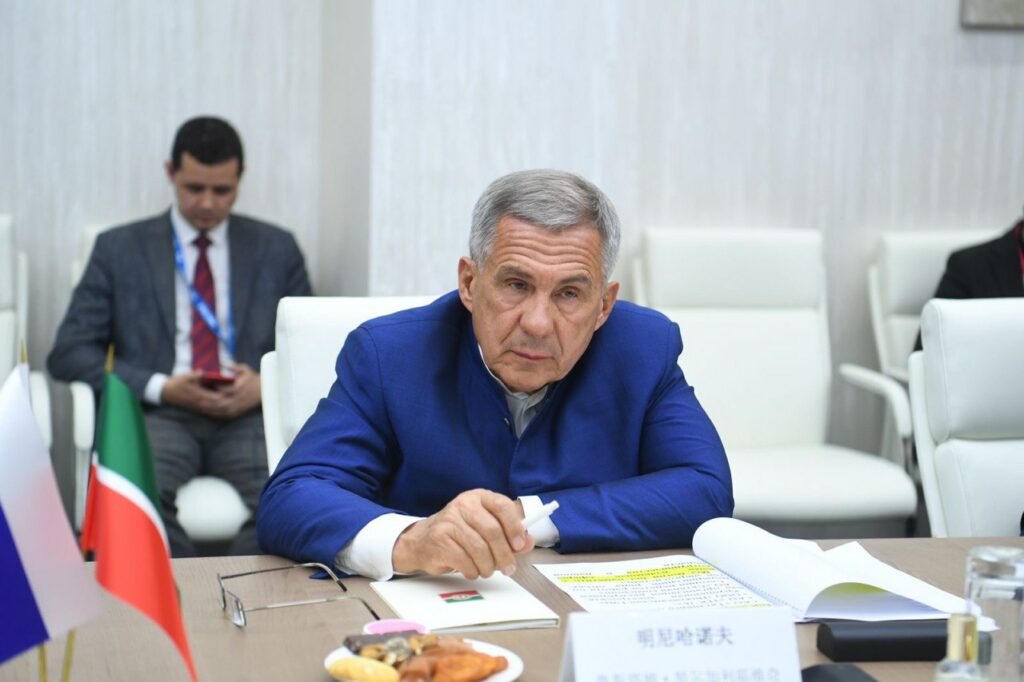 Раис Татарстана Рустам Минниханов в рамках международного форума РОСТКИ встретился с председателем совета директоров компании CHN Energy (Китай) У Цюанем.