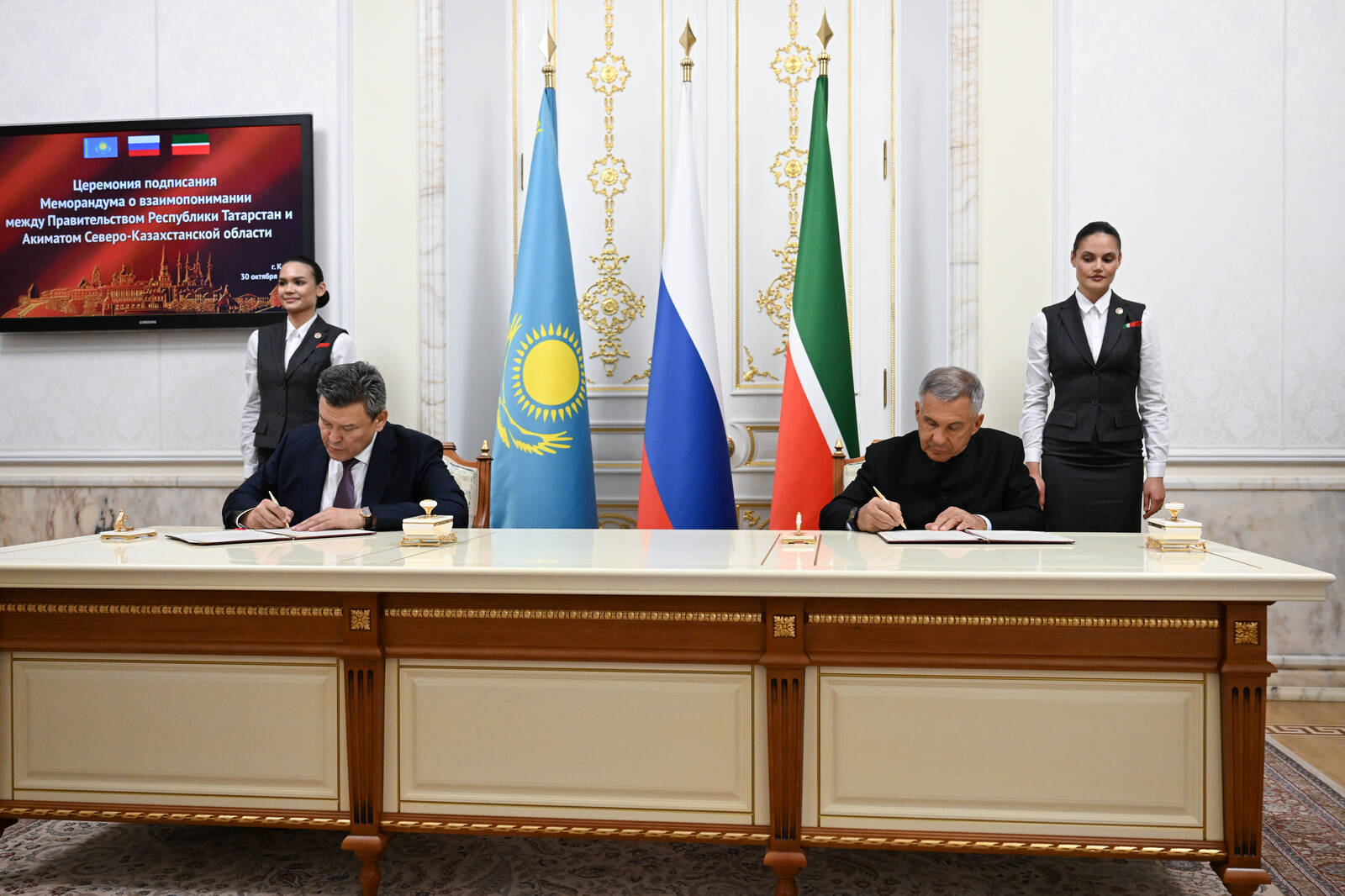 Документ скрепили подписями Раис Татарстана Рустам Минниханов и Аким Северо-Казахстанской области Гауез Нурмухамбетов. Церемония подписания прошла в Казанском Кремле.