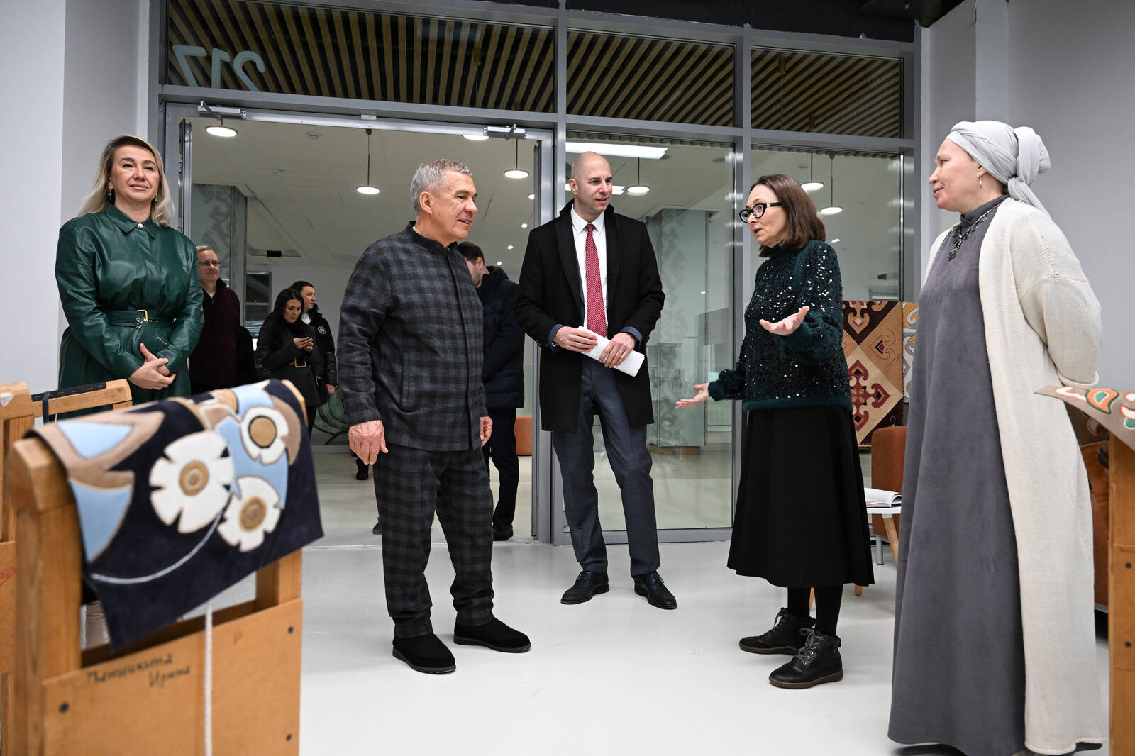 Рустам Минниханов посетил производственные помещения и мастерские по ювелирному искусству, деревообработке, пуховому промыслу, узорному ткачеству, художественной обработке кожи, изготовлению музыкальных инструментов, пошиву национальной одежды.