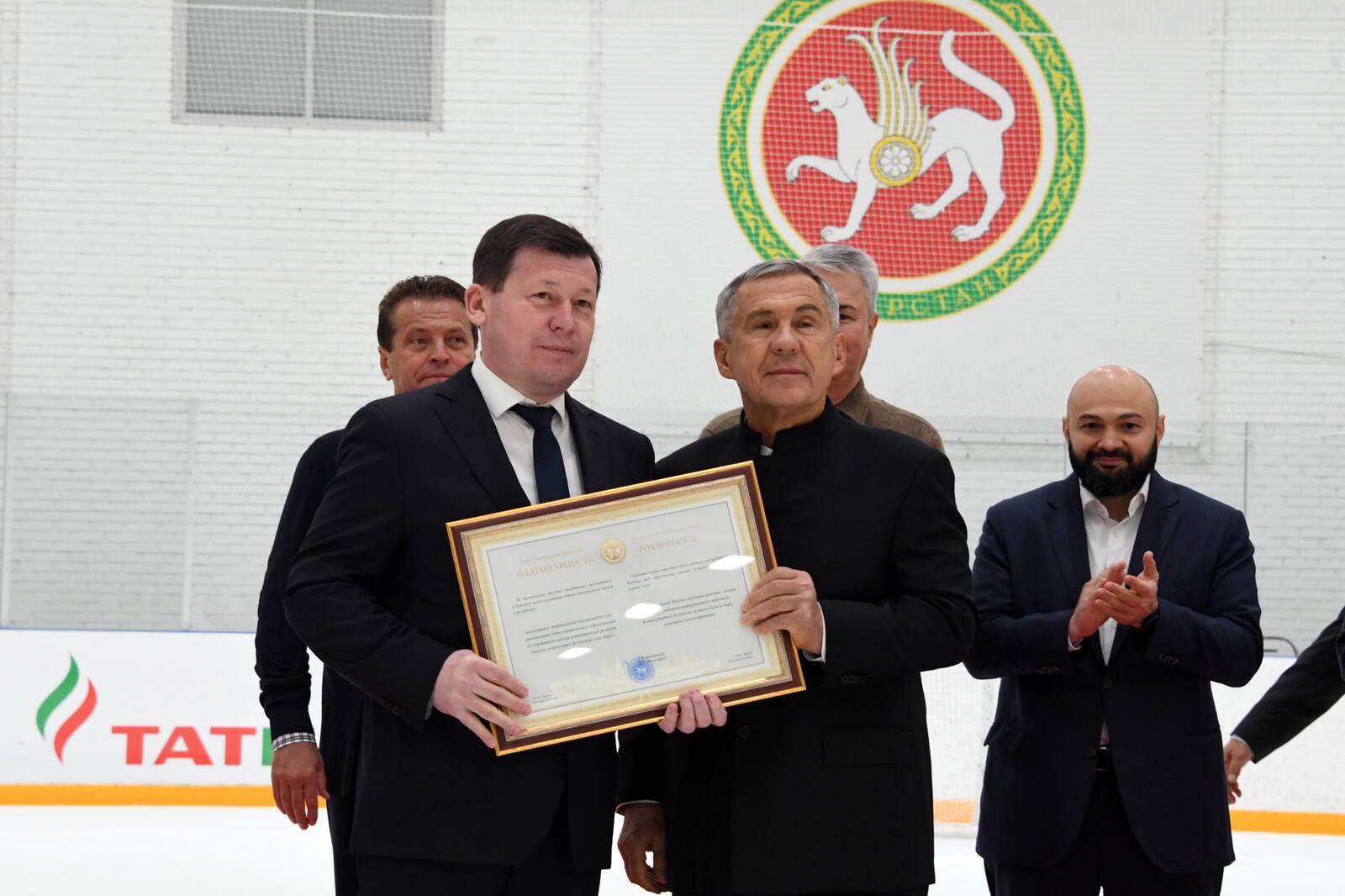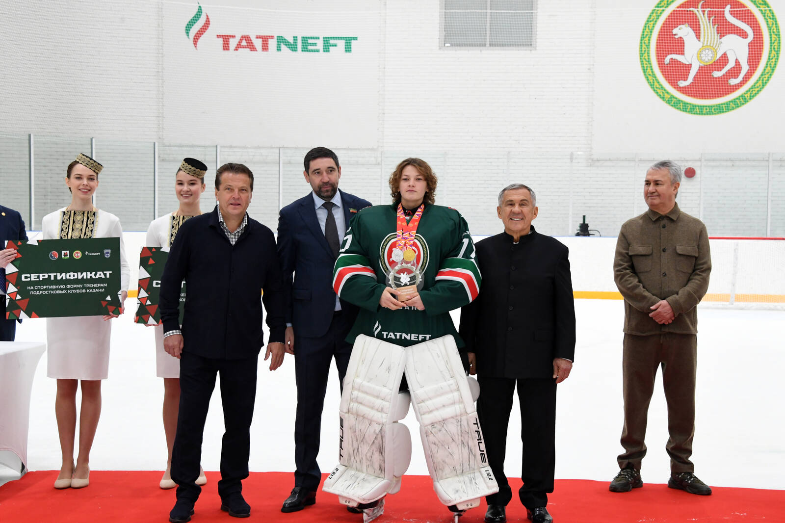 На церемонии состоялось вручение Благодарности Раиса РТ коллективу спортивной школы олимпийского резерва по хоккею «Ак Барс». Кроме того, тренерам подростковым клубам вручили сертификаты на спортивную экипировку.