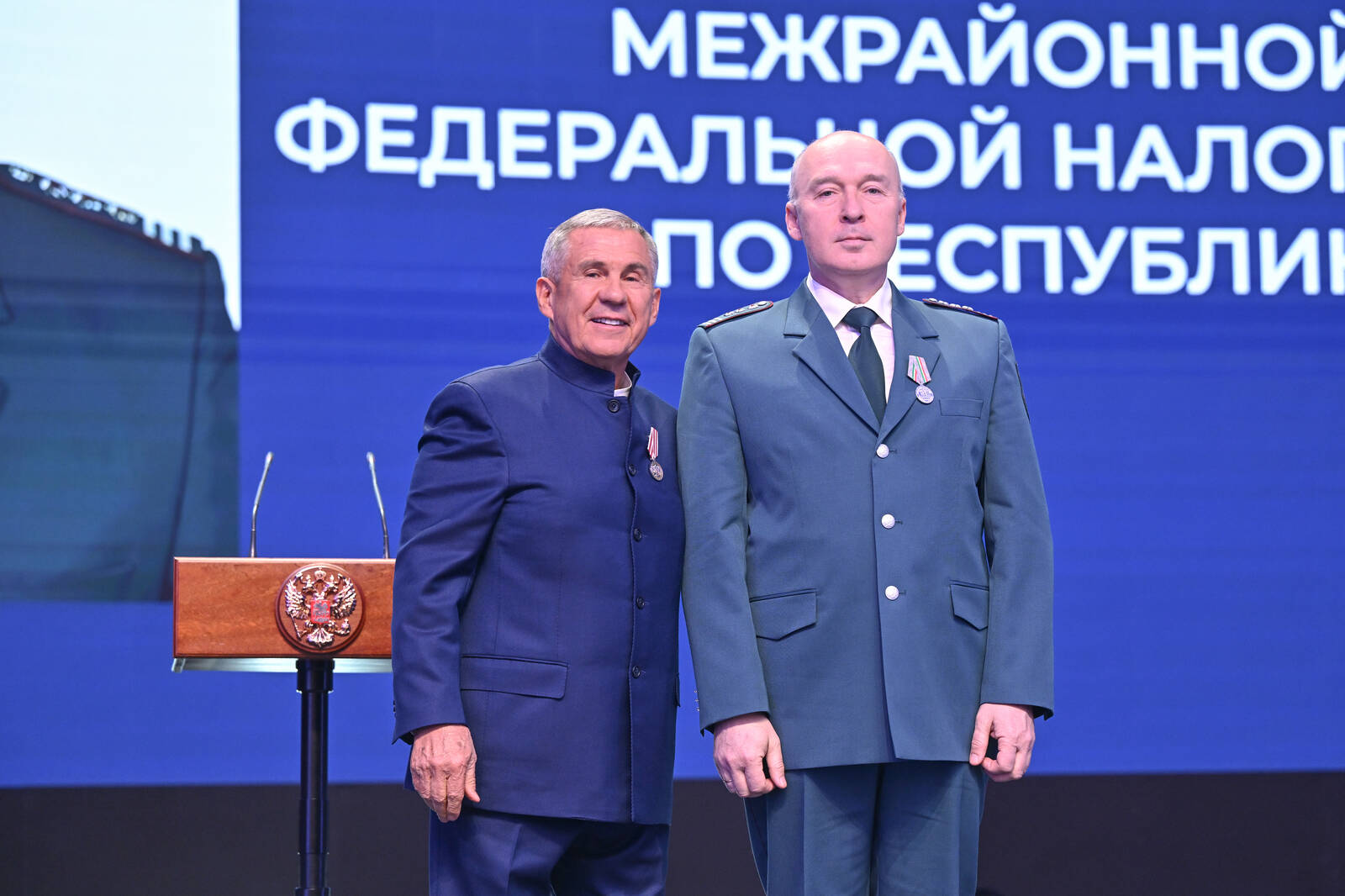 Затем Рустам Минниханов вручил государственные награды Татарстана наиболее отличившимся сотрудникам налоговой службы в республике.