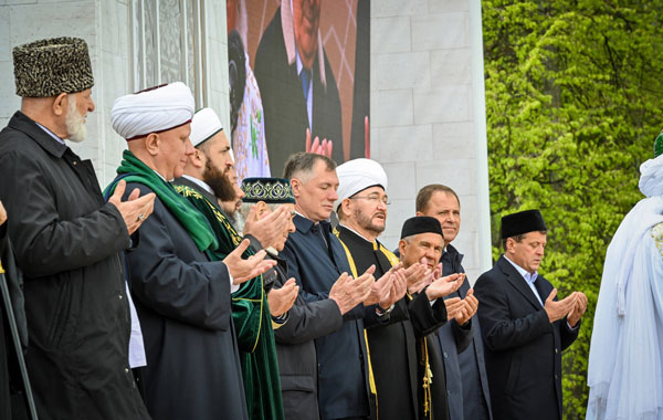 Перед торжественной церемонией праздничный намаз провел муфтий Татарстана Камиль хазрат Самигуллин. В коллективной молитве поучаствовали представители Духовного управления мусульман республики, делегаты ХII Всероссийского форума татарских религиозных деятелей из 72 регионов страны.