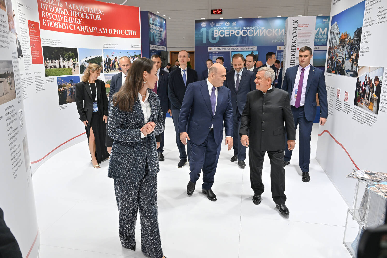 В рамках рабочей поездки в Казань Председатель Правительства Российской Федерации Михаил Мишустин ознакомился с выставкой в рамках Всероссийского форума «Развитие малых городов и исторических поселений» на площадке «Казань Экспо». Премьер-министра РФ сопровождали Раис Татарстана Рустам Минниханов, заместитель Председателя Правительства России Марат Хуснуллин, полномочный представитель Президента РФ в ПФО Игорь Комаров, министр строительства и ЖКХ РФ Ирек Файзуллин.