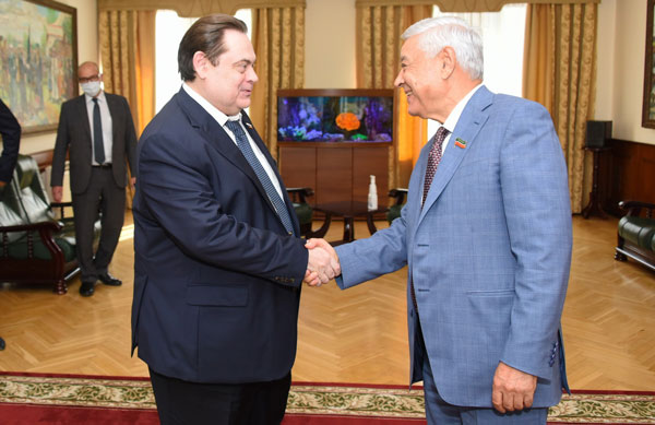 Председатель Государственного Совета Фарид Мухаметшин провёл рабочую встречу с председателем Комитета Государственной Думы по делам национальностей Геннадием Семигиным, который прибыл в Татарстан для участия в IX Форуме национальных и региональных СМИ.