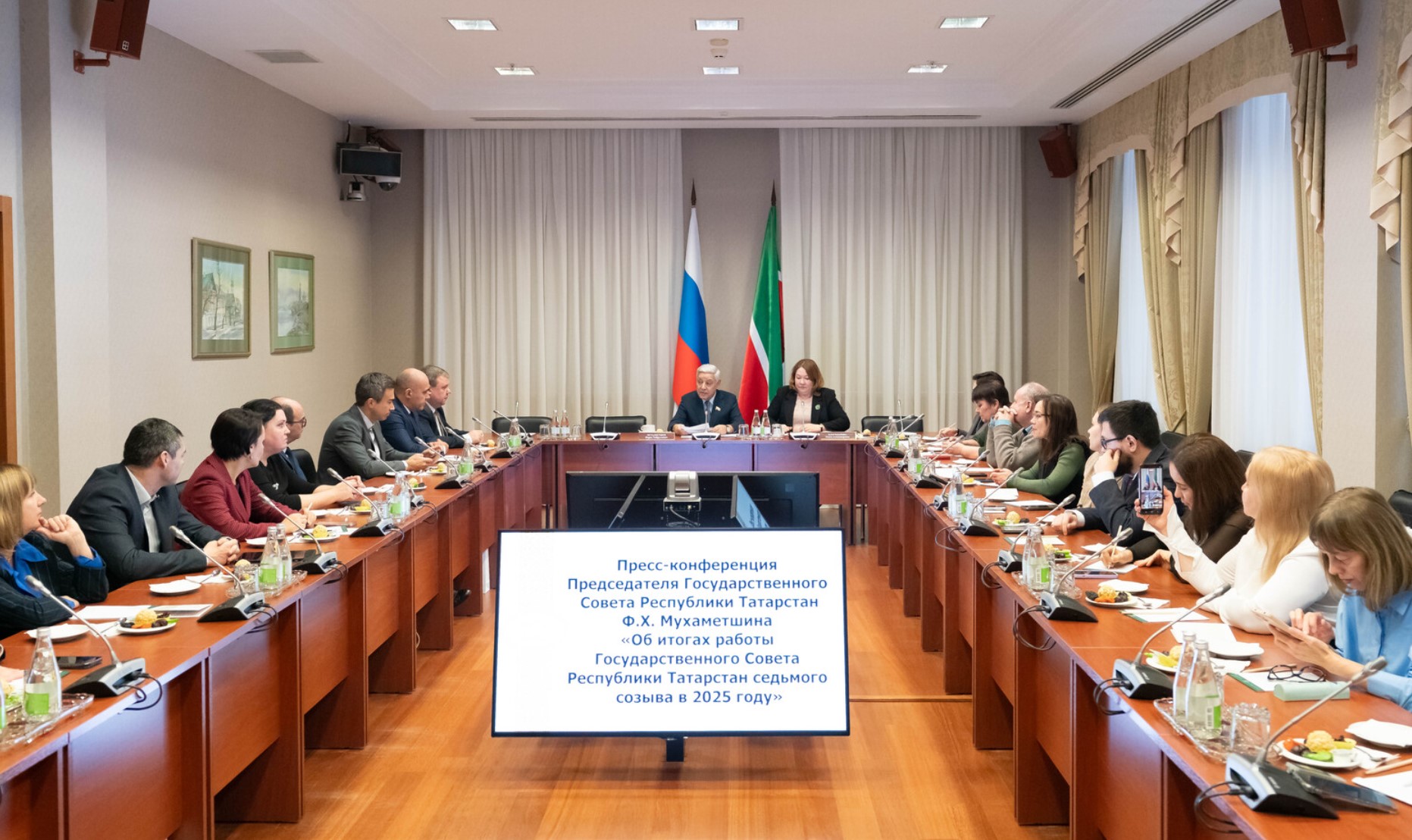 Сегодня Председатель Государственного Совета РТ Фарид Мухаметшин встретился с представителями федеральных и республиканских СМИ. На ежегодной пресс-конференции глава парламента традиционно подвел итоги работы Госсовета в 2025 году.