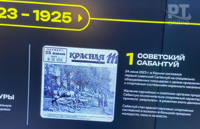 Приятным открытием для меня стал стенд с историей спорта республики, где на первом плане оказалась наша газета – «Красная Татария», как она называлась одно время. Рассказ шел о периоде 1923–1925 годов, а на первой полосе 140-го номера за 1925 год описывалось празднование в Казани первого советского Сабантуя. Ну где еще можно было бы узнать об этом, как не на страницах нашей газеты, ведущей историческую летопись республики?!