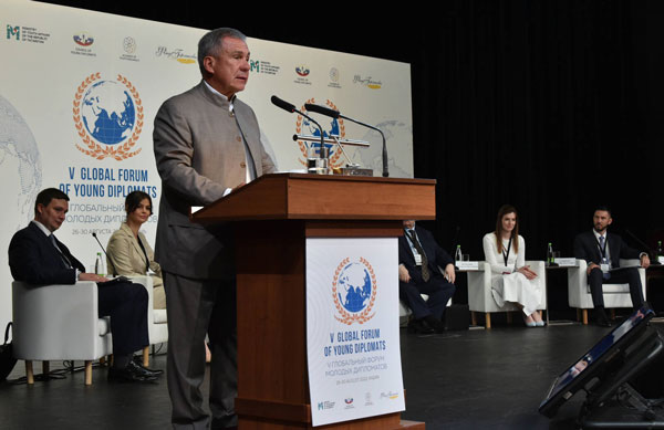 Президент Рустам Минниханов выступил на открытии V Глобального форума молодых дипломатов. Торжественная церемония прошла в Казани на площадке ГТРК «Корстон», в ней приняли участие председатель Совета молодых дипломатов МИД России Константин Колпаков, министр по делам молодёжи РТ Тимур Сулейманов, заместитель Председателя Государственной Думы РФ Борис Чернышов и др.