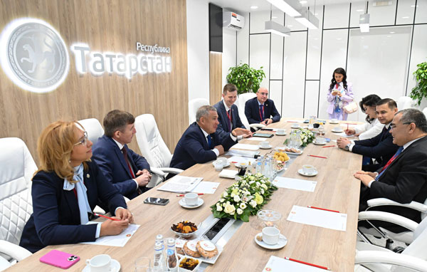 «У нас хорошая динамика. Ваш национальный лидер Президент Шавкат Миромонович Мирзиёев очень активно способствует нашим деловым взаимоотношениям», – сказал Рустам Минниханов, приветствуя делегацию Узбекистана. Президент РТ отдельно отметил успешные шаги в таких проектах, как индустриальный парк «Чирчик».