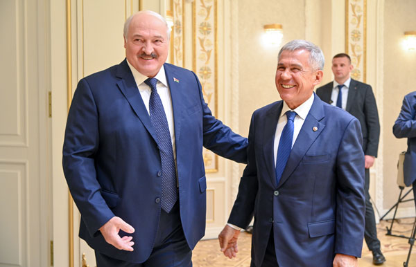 Президент Беларуси отметил: «Рад приветствовать вас, Рустам Нургалиевич, и близкий нам Татарстан. Мы знакомы много лет. Беларусь активно работает с татарстанскими предприятиями. Хочу поблагодарить вас за тёплый приём нашей команды на Играх дружбы, которые прошли в Казани».