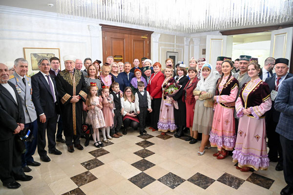 Рустам Минниханов в свою очередь, обращаясь к соотечественникам, отметил их большой вклад в сохранение родного языка и культуры. «Вы вносите достойный вклад в дело взаимодействия и взаимопонимания различных народов этой страны», – отметил он. Особо Рустам Минниханов поблагодарил активистов общественных организаций за неравнодушие, назвав их патриотами своей нации. Он напомнил, что в этом году в Казани пройдёт Международный форум «Россия – Исламский мир: KazanForum» и пригласил татар Беларуси посетить Татарстан.