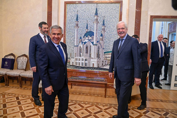 Сегодня Раис Татарстана Рустам Минниханов провёл в Минске встречу с Чрезвычайным и Полномочным послом Российской Федерации в Республике Беларусь Борисом Грызловым.