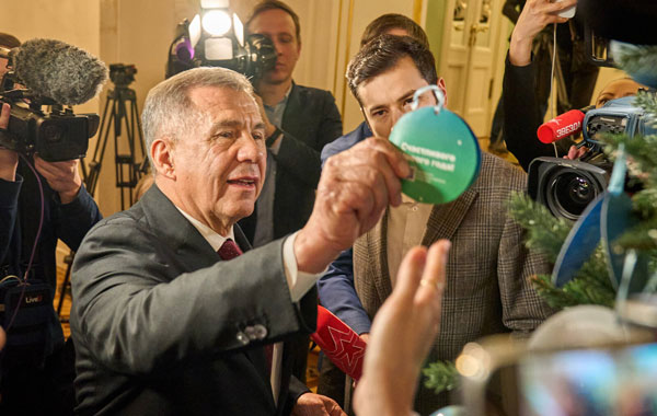 Сегодня Президент Рустам Минниханов в рамках рабочей поездки в Москву принял участие в добровольческой акции «Ёлка желаний» в Московском Кремле.