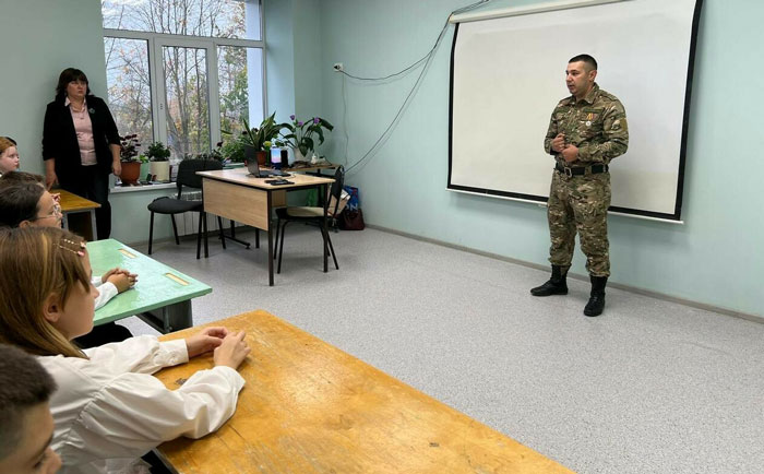 Боец рассказал ученикам о своей службе и о том, что военный должен быть смелым, быстро бегать, уметь оказывать первую помощь себе и товарищам. Фирдус пожелал, чтобы дети ценили своих родных и близких, любили Родину. Ученики внимательно слушали военного и задавали ему интересующие их вопросы. А тот поделился различными историями из своей жизни на передовой. В заключение дети подарили бойцу – рисунки и поделки, сделанные своими руками.
