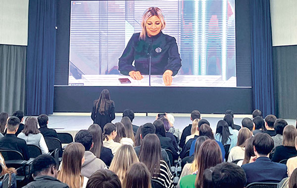 Первым делом Мария Захарова призналась, что давно мечтает лично приехать в Казань и Татарстан. Однако из-за плотного рабочего графика в этот раз организовать лекцию удалось лишь в онлайн-формате. «Но я верю, что у нас состоится и очное общение», – сказала она.