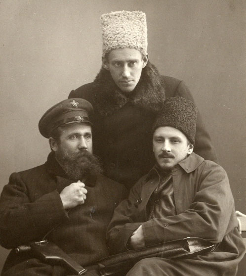 Первый редактор газеты, сотрудник НКВД при ревкоме Казанской губернии Виктор Тихомирнов (справа) с членом коллегии ВЧК, председателем военного трибунала Восточного фронта Мартиньшем Лацисом и заведующим отделом управления губкома РКП(б) Леславом Резаусским. Казань, январь 1919 года. Снимок сделан незадолго до болезни и смерти Виктора Тихомирнова.