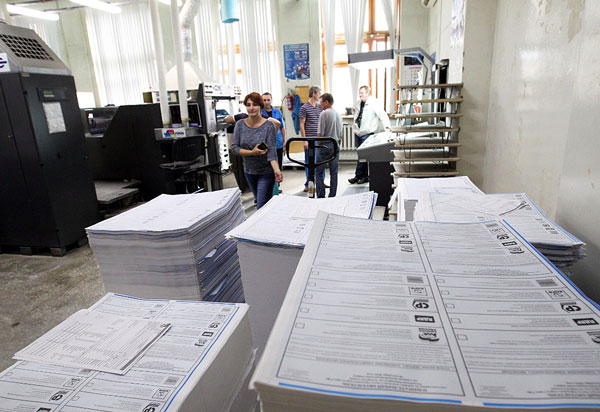 Как уже сообщалось, бюллетени напечатаны на белой бумаге с защитной сеткой светло-синего цвета для голосования по федеральному округу, зелёного цвета – по одномандатным округам. Каждый бюллетень будет защищён специальной номерной маркой, саморазрушающейся при попытке её переклеить, а также заверен подписями членов участковых комиссий и печатью участковой комиссии.