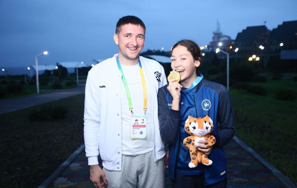 В выходные дни медали в копилку сборной Татарстана принесли пловцы, гимнастки и тхэквондисты. Софья Дьякова (на снимке) стала первой в плавании на дистанции 200 метров вольным стилем, Сабина Аюпова показала лучшее время на дистанции 200 метров брассом, а в финале на дистанции 400 метров комплексным плаванием первенствовал Ярослав Соколовский. Он выиграл во Владивостоке уже три награды высшей пробы – ранее Ярослав поднимался на высшую ступеньку пьедестала почёта после финальных заплывов на дистанциях 1500 метров вольным стилем и 400 метров комплексным плаванием.