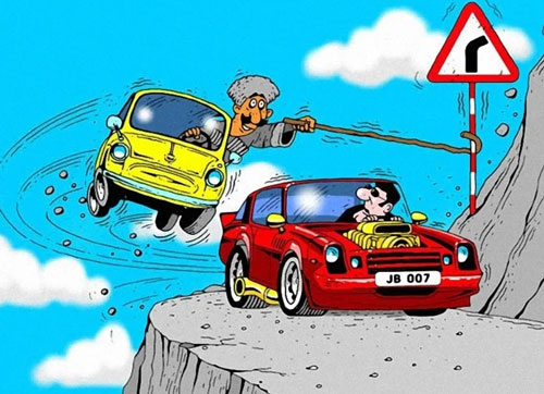 – Смотри, смотри – кто-то сорвался в пропасть! Вот идиот, за машиной не смотрит, тормоза не проверяет, сам погибнет и людей погубит!