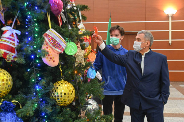 Сегодня в перерыве заседания Госсовета в роли добрых волшебников выступили Президент Рустам Минниханов, Председатель Госсовета Фарид Мухаметшин, депутаты всех уровней. До начала заседания все они сняли с ёлочных лап открытки с детскими мечтами о подарках. Авторы пожеланий – это дети с нарушениями здоровья, дети-сироты, дети из малообеспеченных семей. Рустаму Минниханову «достались» мечты трёх ребятишек. Мальчики попросили об экскурсии на завод, «примерке» на себя роли танкиста, девочке хочется иметь ноутбук для работы. Фарид Мухаметшин выполнит просьбу подростка, которому для занятий музыкой нужна специальная миниатюрная гитара. Эти и другие мечты-подарки будут доставлены по своим адресам в ближайшее время.
