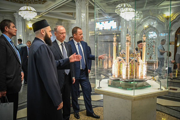 В мечети Кул Шариф для Секретаря Совета безопасности провели экскурсию, познакомили с уникальной архитектурой и рассказали об истории развития ислама на территории современного Татарстана.