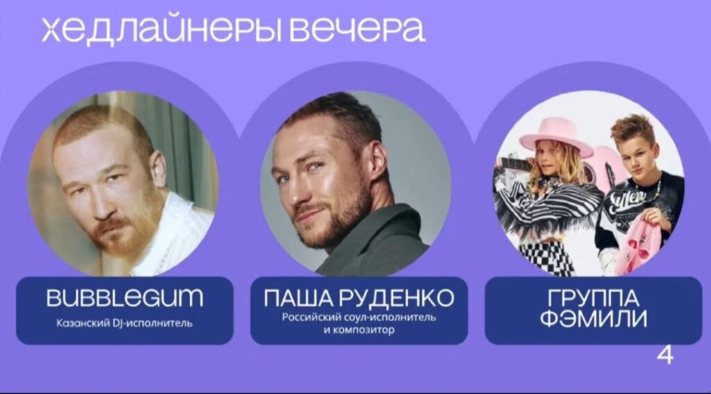 «Хедлайнерами последнего звонка станут казанский диджей-исполнитель Bubblegum и российский соло-исполнитель, композитор, участник шоу „Песни“ на ТНТ Паша Руденко, а также детско-семейная группа Family», — рассказала она.