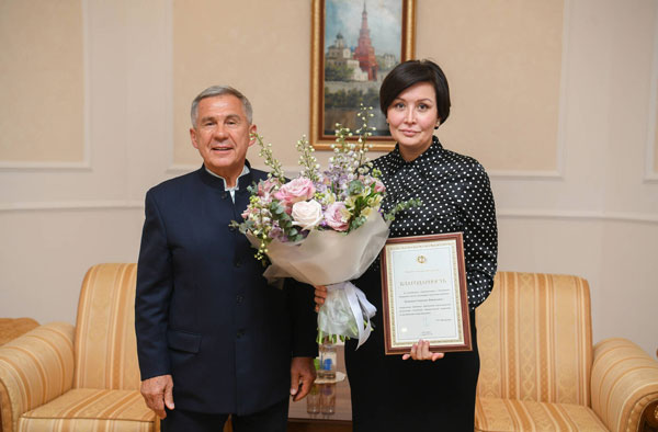 Рустам Минниханов вручил Светлане Чупшевой Благодарность Раиса Татарстана за плодотворное сотрудничество с республикой и вклад в реализацию совместных проектов.