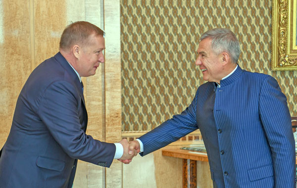 Президент Татарстана Рустам Минниханов встретился сегодня в Доме Правительства с руководителем Нижне-Волжского бассейнового водного управления Николаем Пономарёвым.