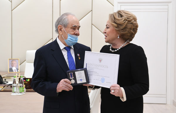 Председатель Совета Федерации вручила Минтимеру Шаймиеву памятную медаль «25 лет Совету Федерации».