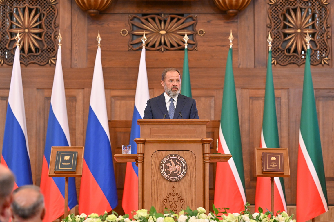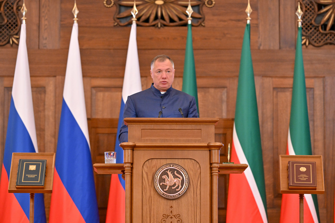 «Вступая в должность Раиса Татарстана, прежде всего хочу поблагодарить всех граждан за оказанное доверие. Принимаю выбор многонационального народа Татарстана, осознаю ответственность за судьбу республики перед всеми ее жителями, перед предками, сохранившими и передавшими нам традиции, ценности и любовь к родной земле, а также перед будущими поколениями. Низкий поклон всем защитникам Отечества, отстоявшим свободу в годы Великой Отечественной войны и их наследникам, которые сегодня сражаются за безопасность страны в ходе специальной военной операции», – заявил Рустам Минниханов.