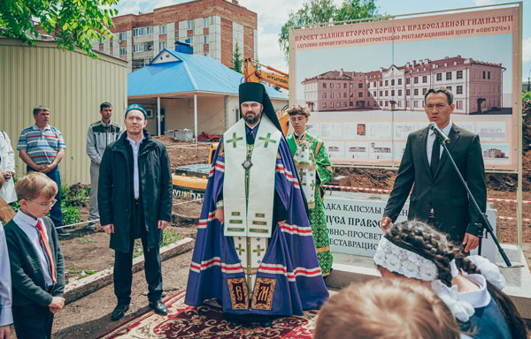 Церемония начала строительства прошла торжественно – в основание будущего здания заложили капсулу со специальной грамотой. Строительство второго корпуса позволит открыть в Альметьевске и православный детский сад. Новое здание вместит в себя и начальную школу, а освободившиеся помещения в перспективе примут малышей, рассказала директор гимназии Надежда Жилина.