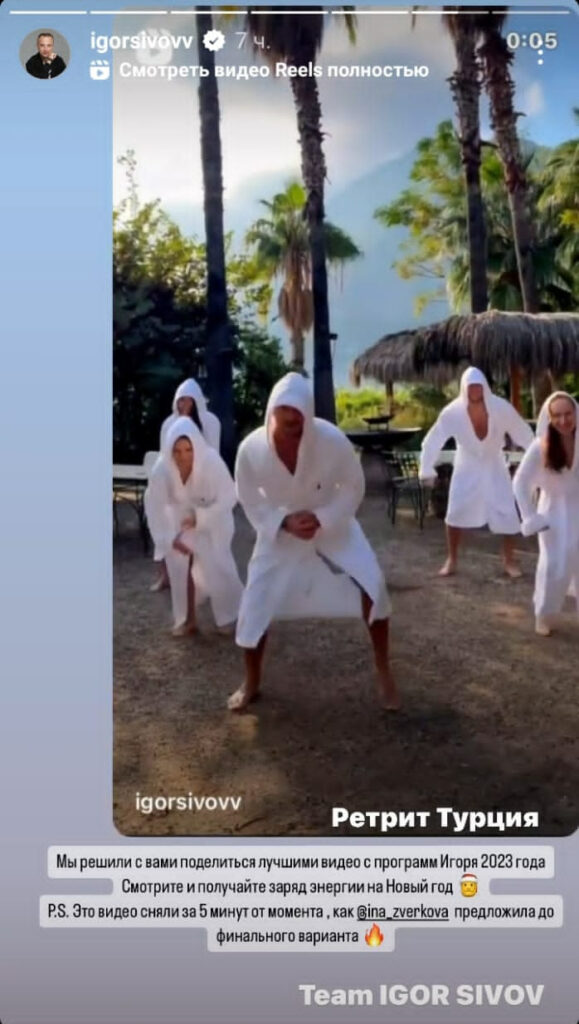 31 декабря и 1 января он опубликовал видеопоздравления и рилсы на фоне пальм с подписью «Ретрит Турция». Тренер по энергодыханию и мастер ресурсного состояния (так именует себя Сивов) 28 декабря проводил некий выездной тренинг в Абу-Даби (ОАЭ), а оттуда, видимо, переместился в Турцию.