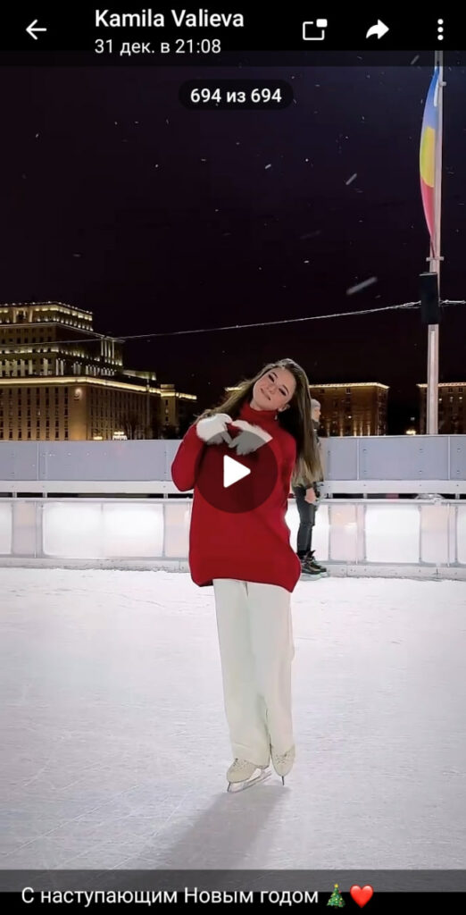 - Поздравляю всех с наступающим Новым годом. Мы по традиции на катке с друзьями, только в этом году в парке Горького. Смотрите, как здесь красиво! - показывает на видео Валиева.