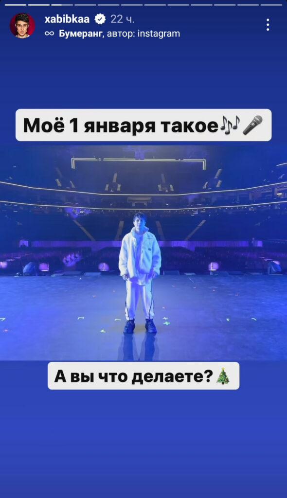 «Я лег в 2 ночи, так как сегодня уже выступаю на большом концерте», - написал Хабиб после встречи Нового года, а потом завалил своих подписчиков сторис с самого концерта.